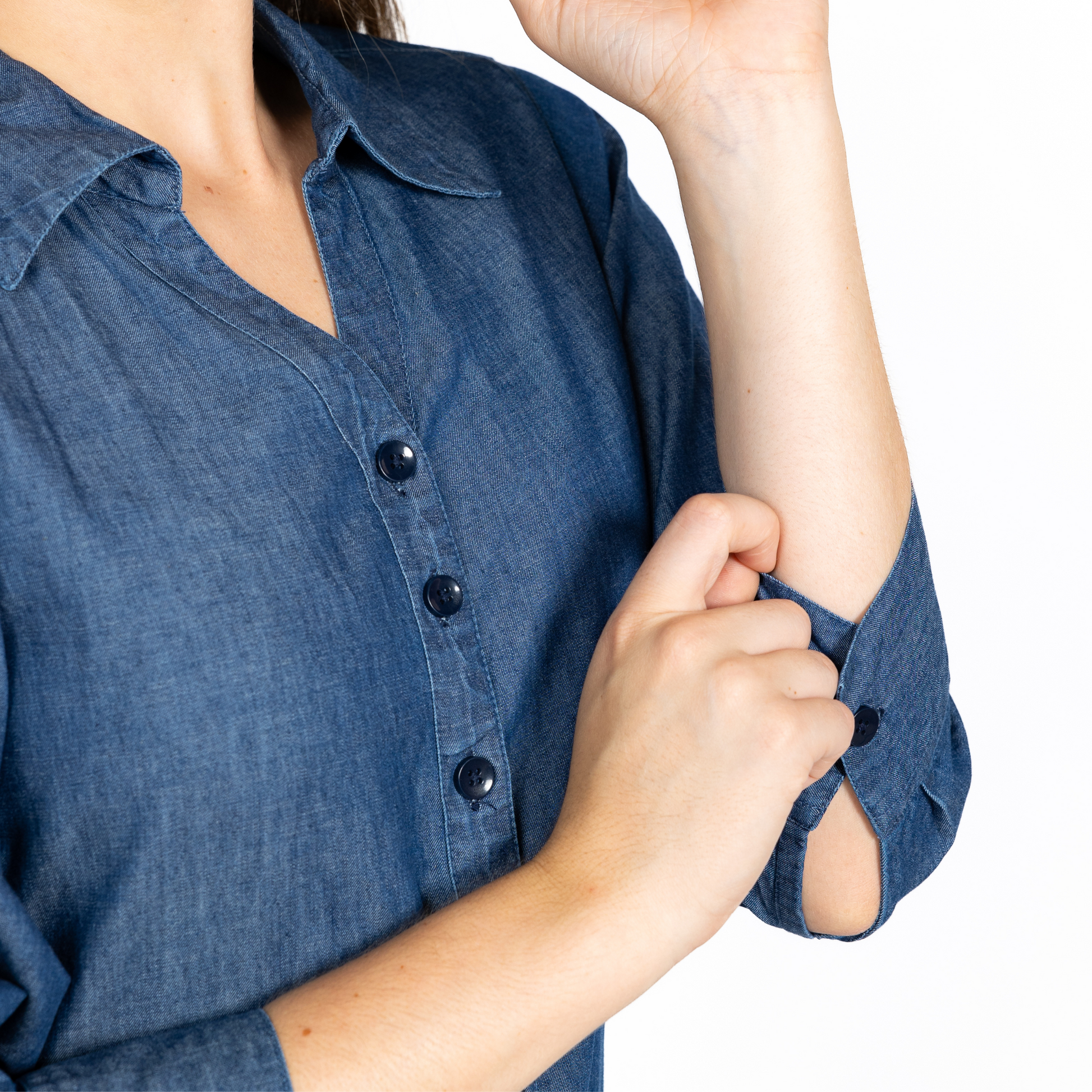 ISS Embroidery 3/4th Sleeves Button-Up Denim Dress