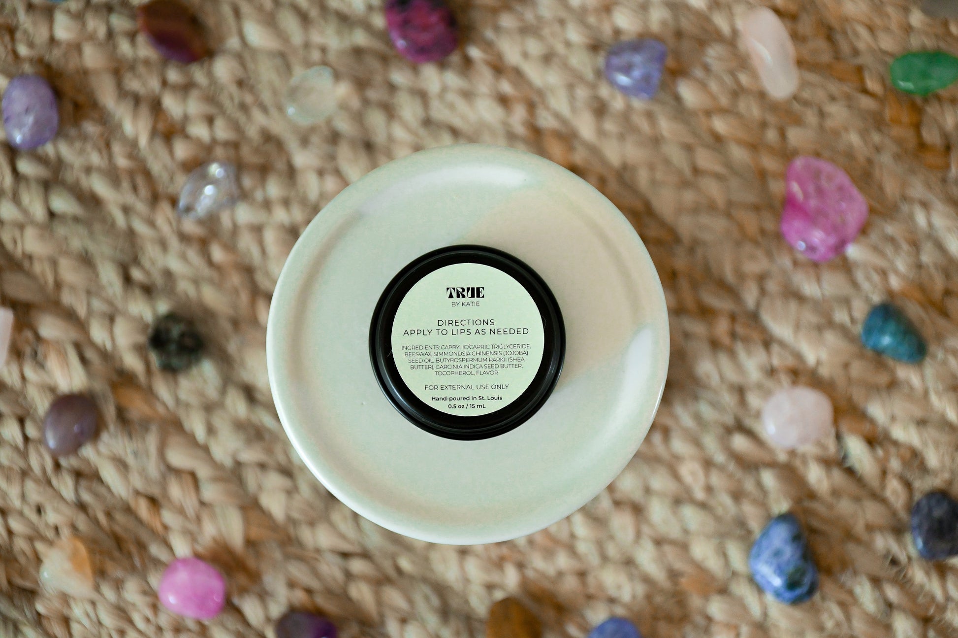 Caprylic/Capric Triglycerides, Jojoba Oil, Shea Butter, Kokum Butter, White Beeswax, Vitamin E, (Natural Flavor Oil – flavored options only)