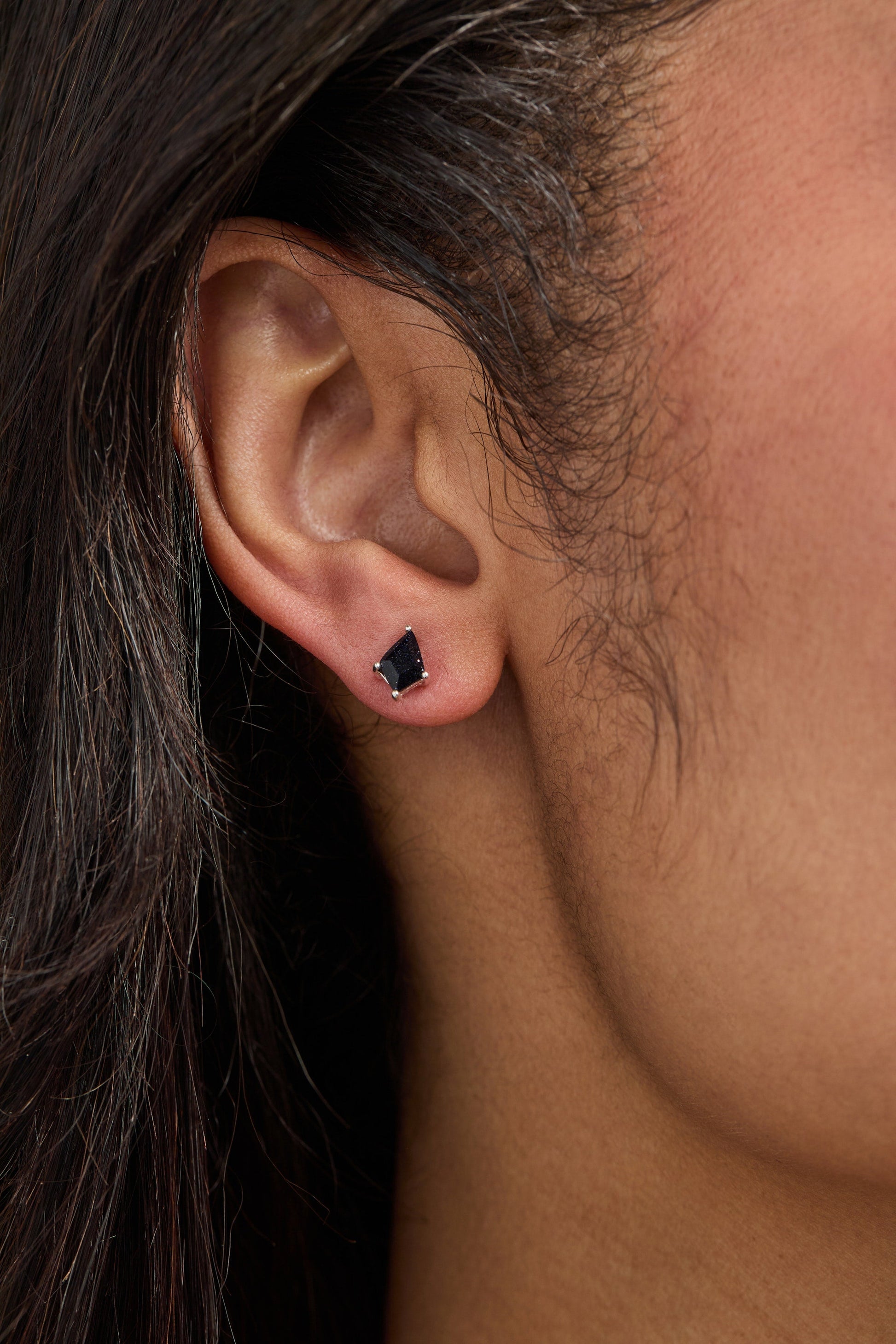 Discover the charm of this celestial duo featuring blue sunstone nestled in a prong setting alongside a two-tone star and moon stud. This playful set of two earrings brings meaningful celestial motifs to brighten your style.
