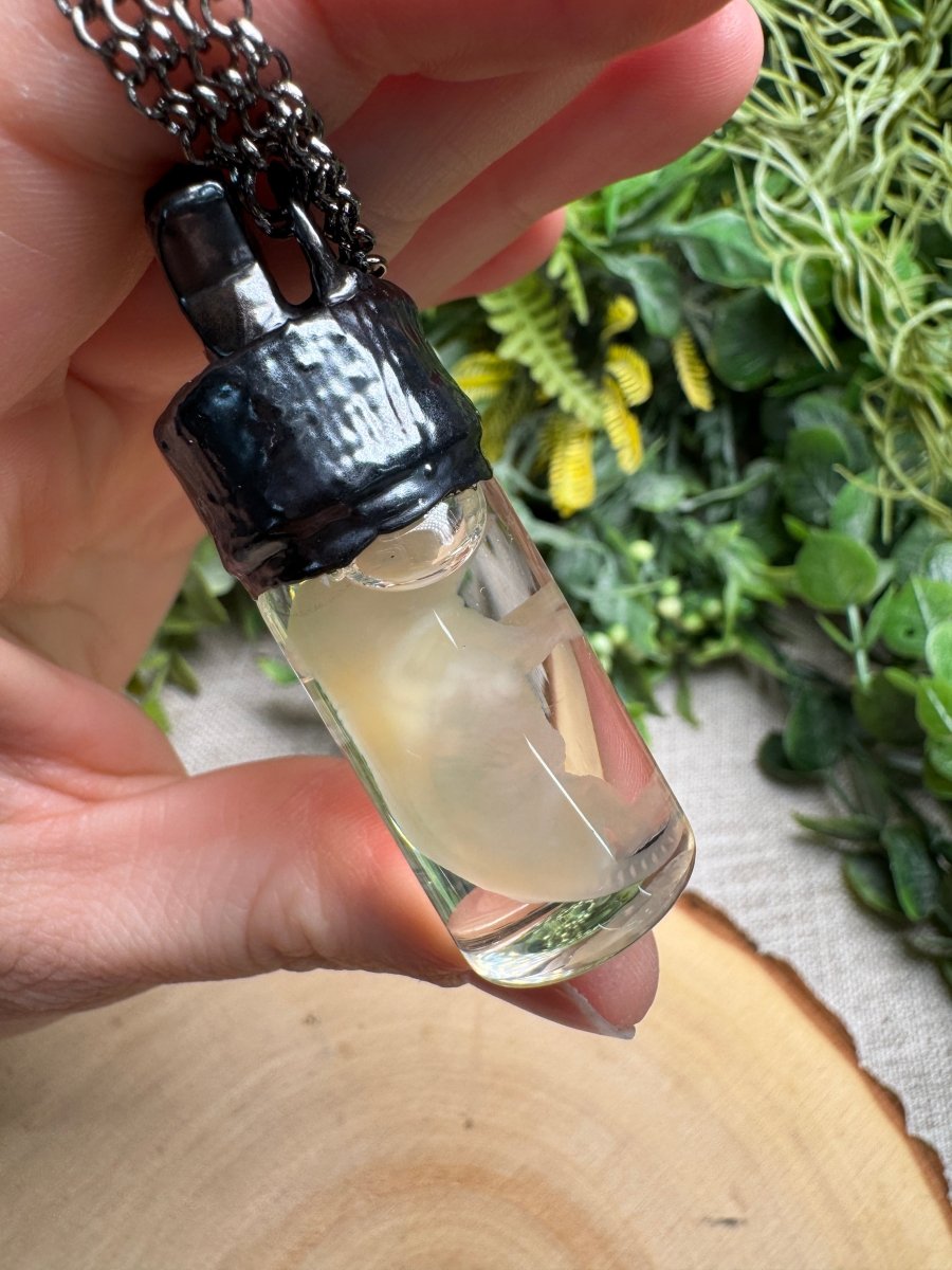 Mortessa- Wet Specimen Ghost Pinkie Mouse and Moonstone Star Necklace