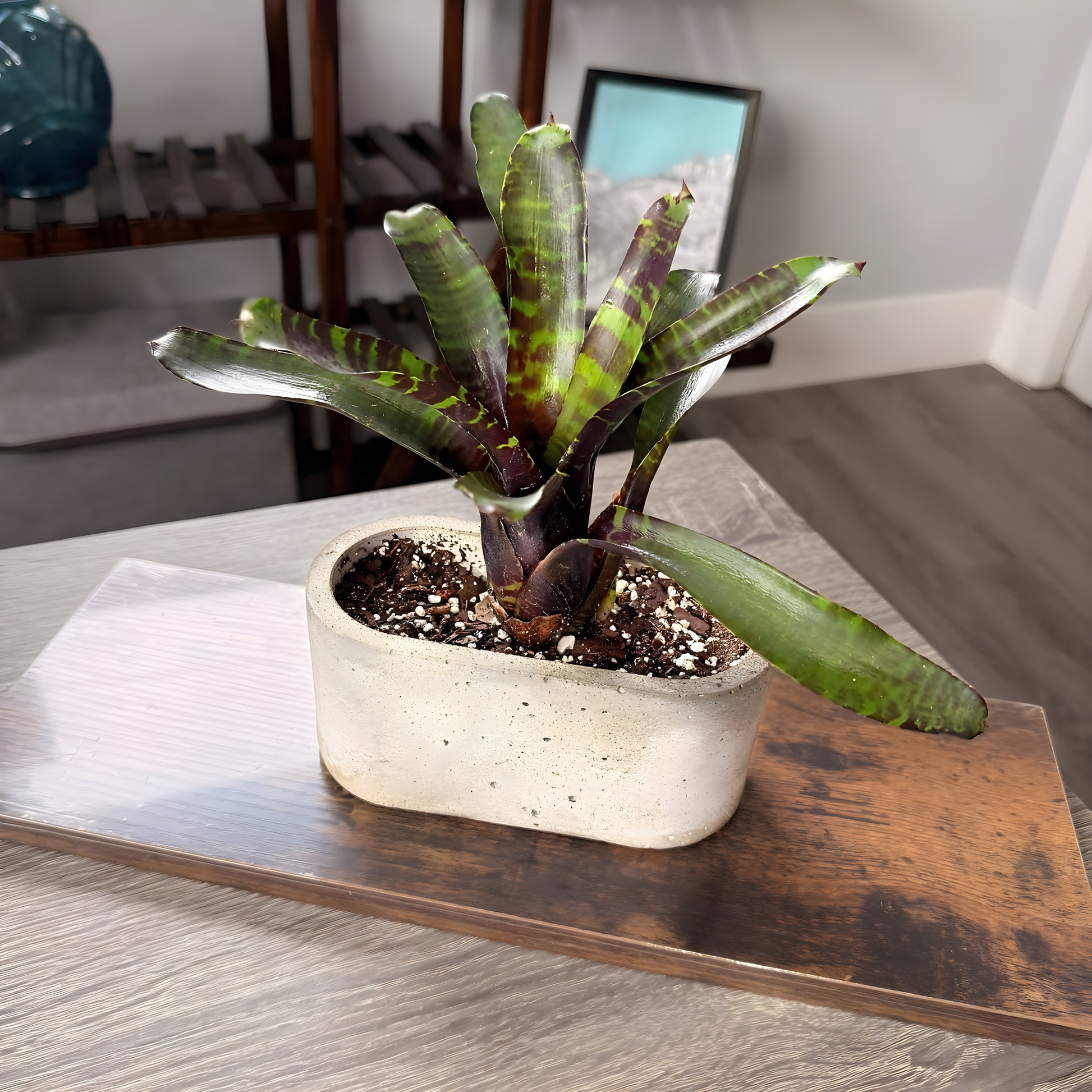 Neoregelia Blushing Tiger – Colorful Bromeliad in 4.5″ Charlie Pot (Oval)