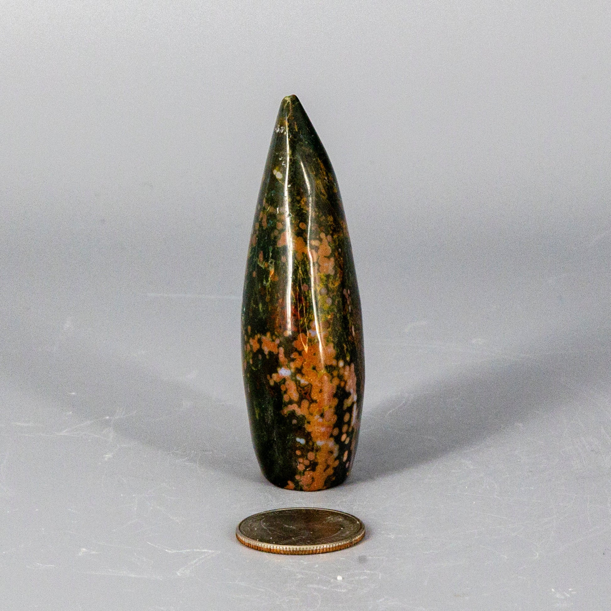 Ocean Jasper Torch Freeform is a stunning natural specimen, known for its vibrant orbs and flowing patterns that evoke the energy of ocean waves. This unique shape enhances the stone’s inherent beauty, making it ideal for display or collection. Beyond its aesthetic appeal, Ocean Jasper is revered in metaphysical communities for its powerful healing properties. It promotes harmony, emotional balance, and a deep connection to the rhythms of the earth and sea.
