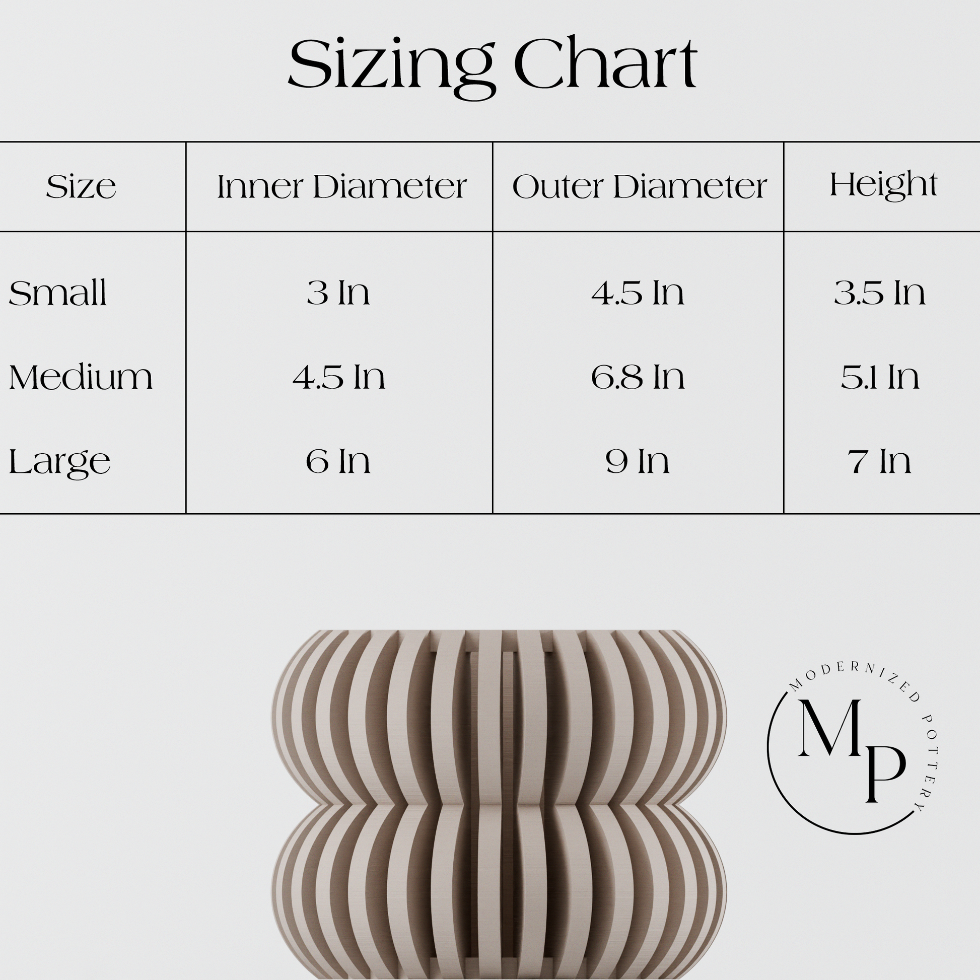Medium: Height: 5.1 inches | Width: 6.8 inches | Depth: 6.8 inches | Opening: 4.5 Inches