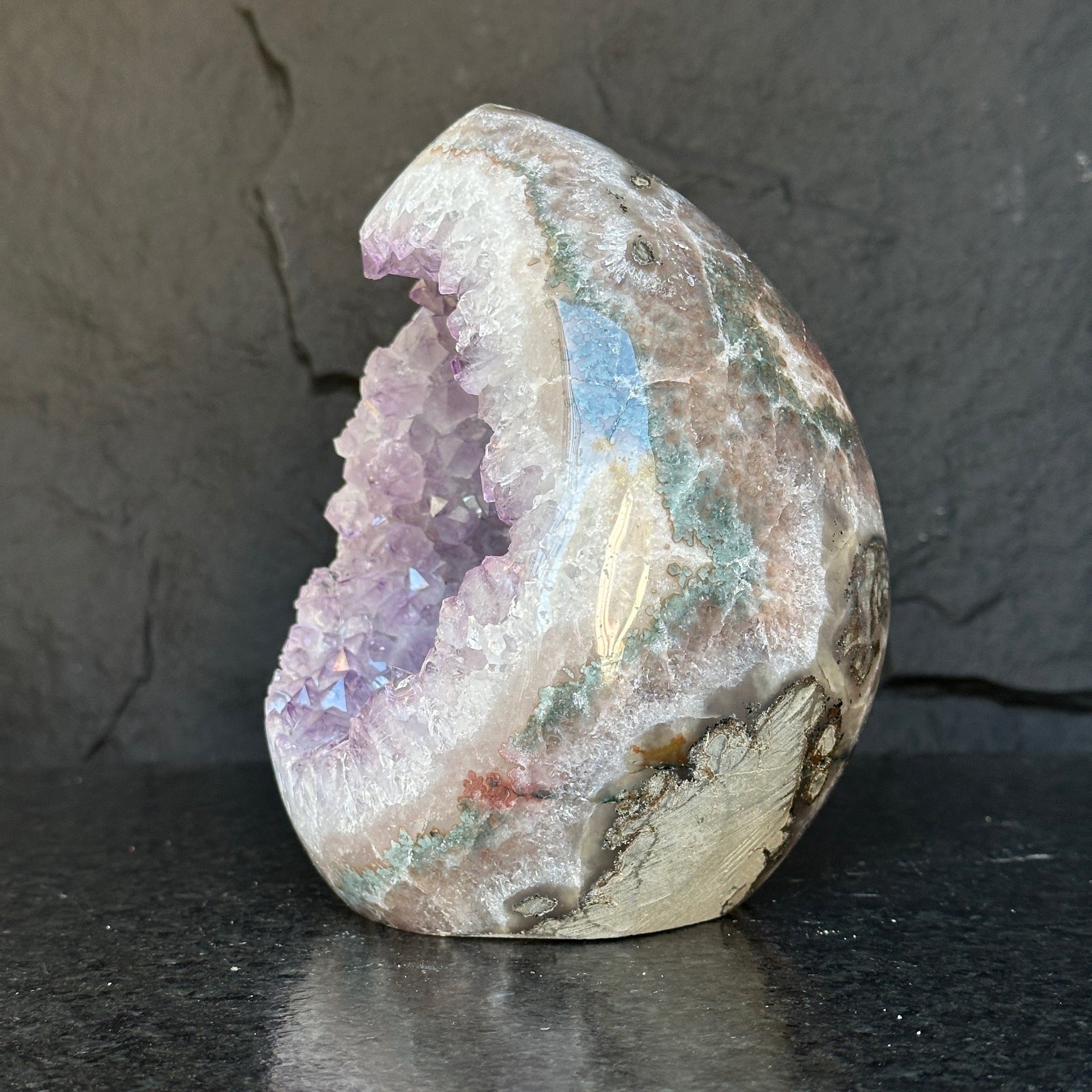 Quartz, Amethyst & Agate Oval – 7.5 lb Fully Polished Crystal