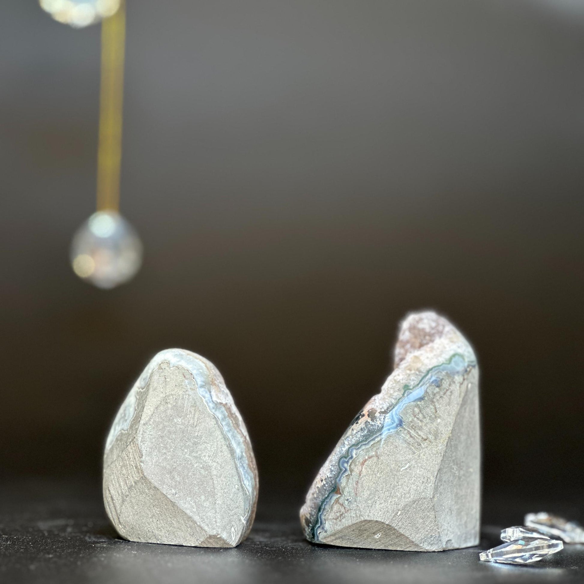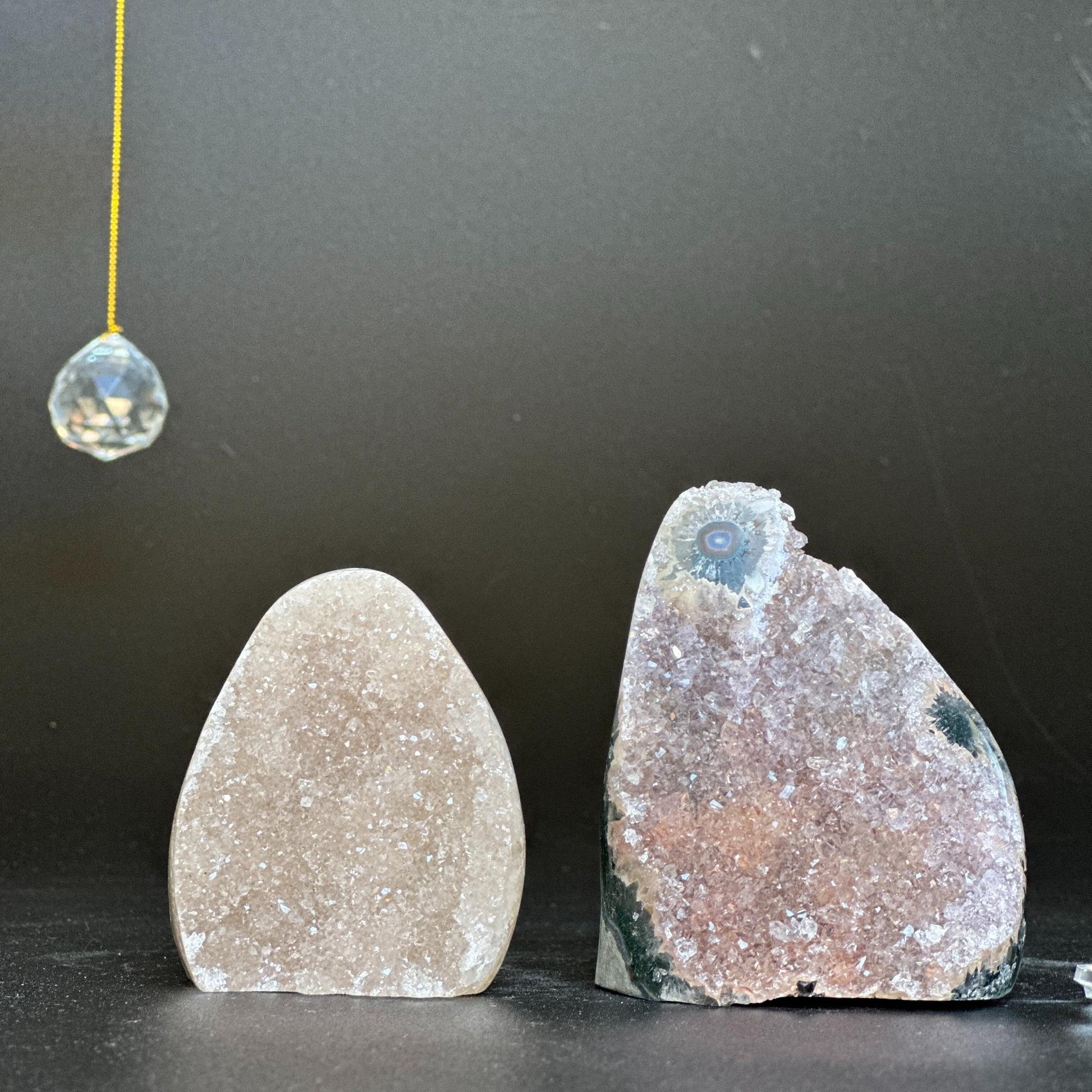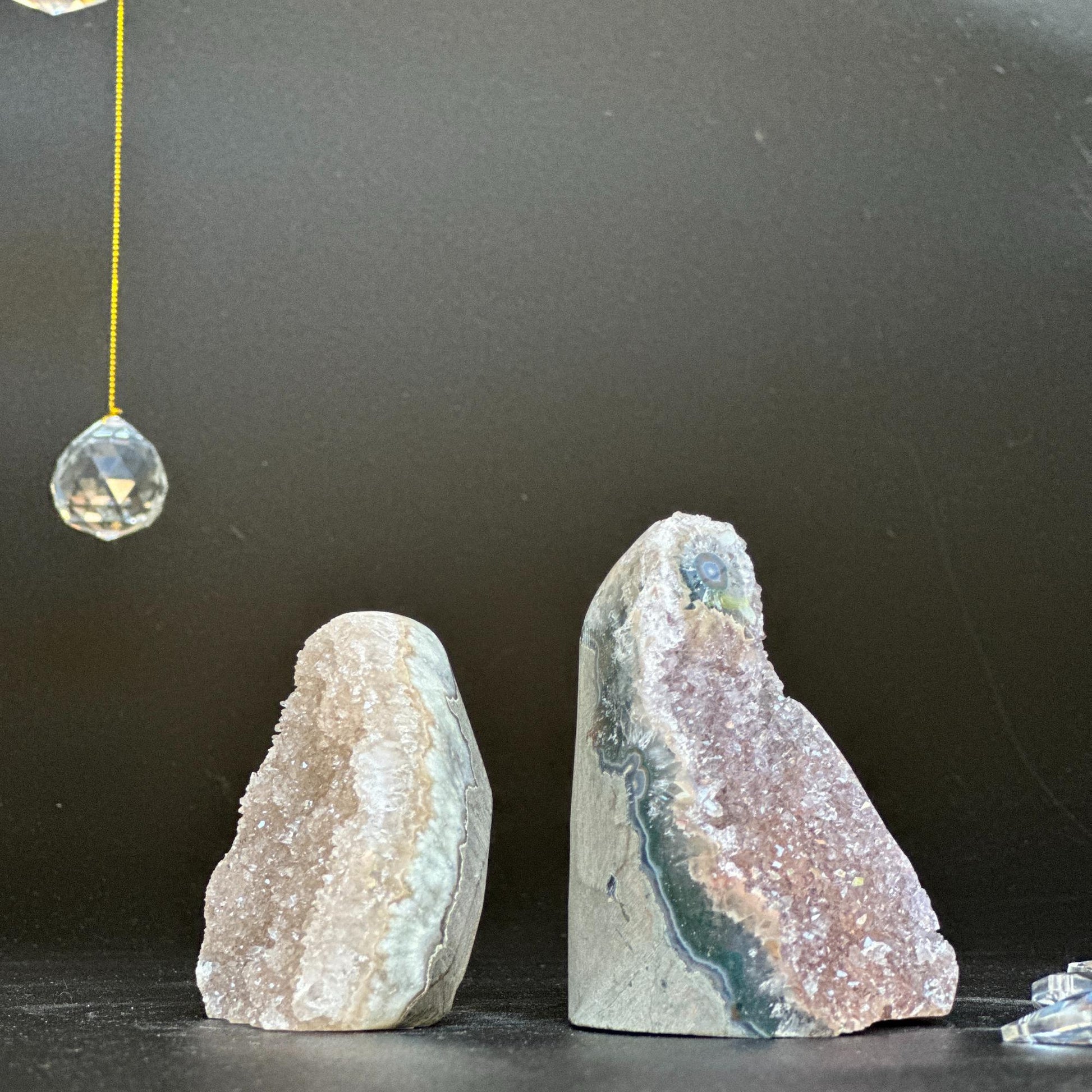 This set of 2 rainbow amethyst clusters with polished edges has the highest quality of the semi precious stones.