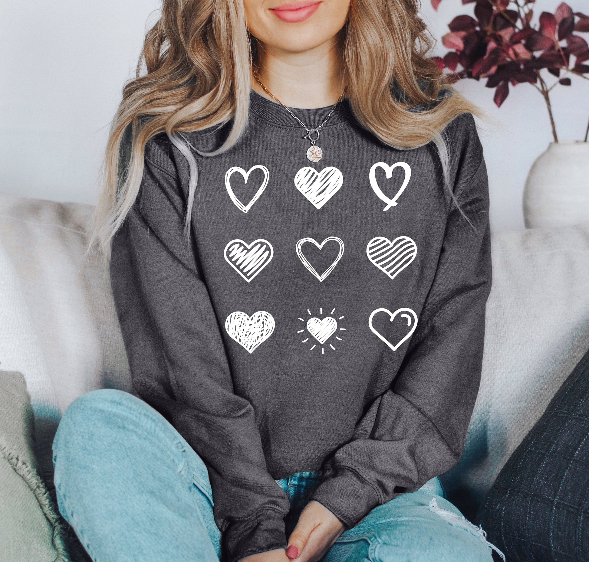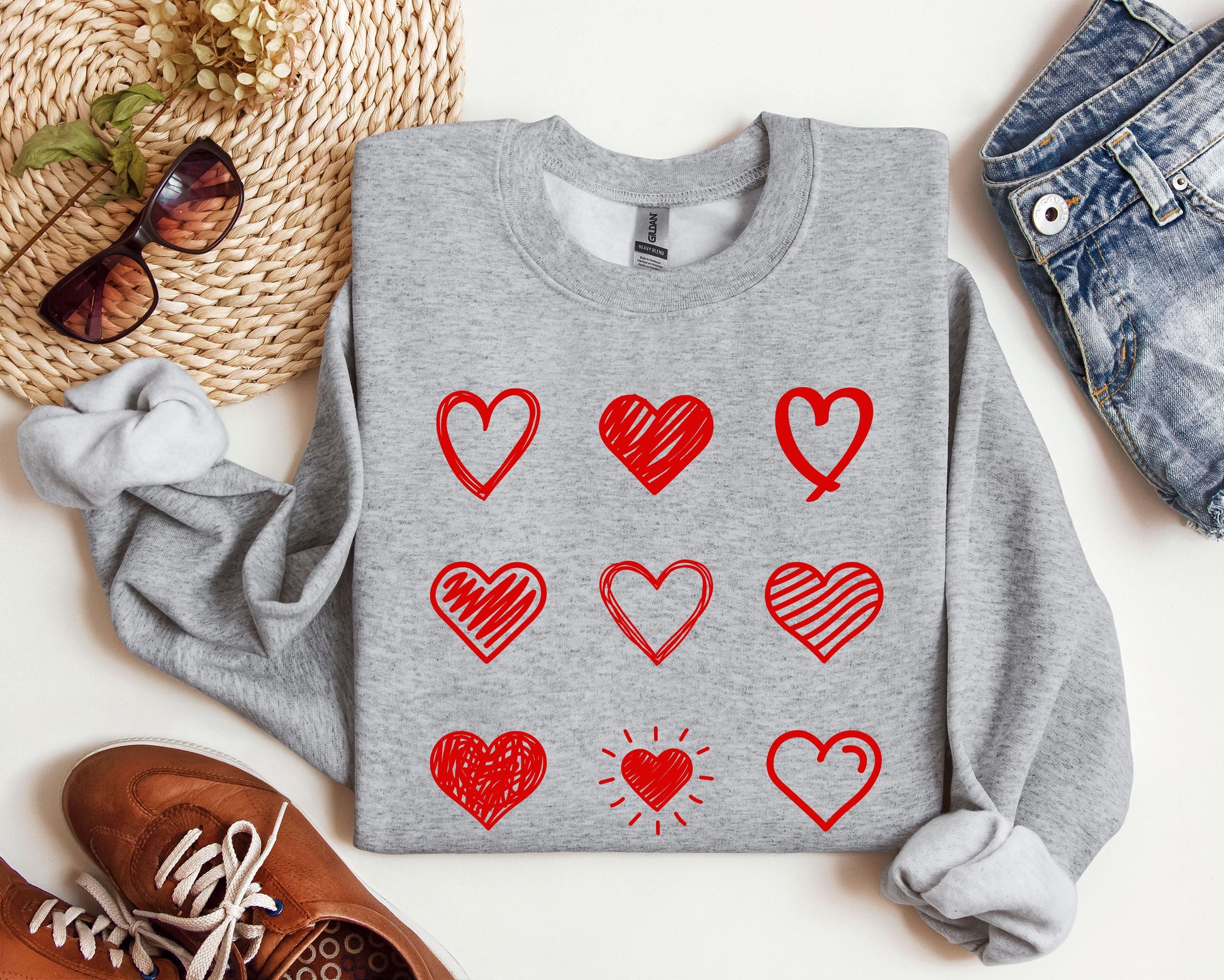 The Retro Cute Hearts Sweatshirt pairs beautifully with jeans for a relaxed yet trendy look. Layer it over your favorite shirts for added style, making it ideal for both casual outings and cozy nights in. Celebrate love and comfort all season long with this charming sweatshirt!