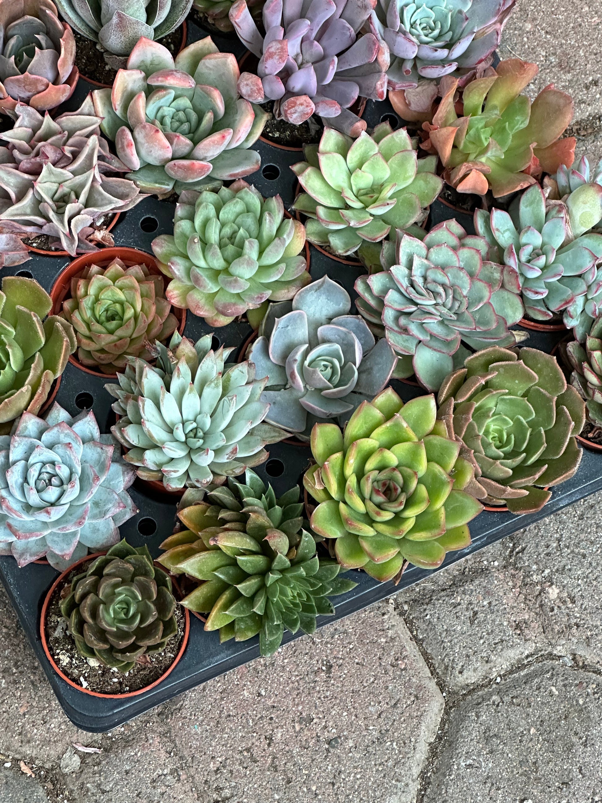 This beautiful tray of 40 3” rosettes offers color, variety and beauty. Each order will have different varieties as growers inventory always changes. I hand-pick the absolute best for you! I’m your new favorite plant dealer!