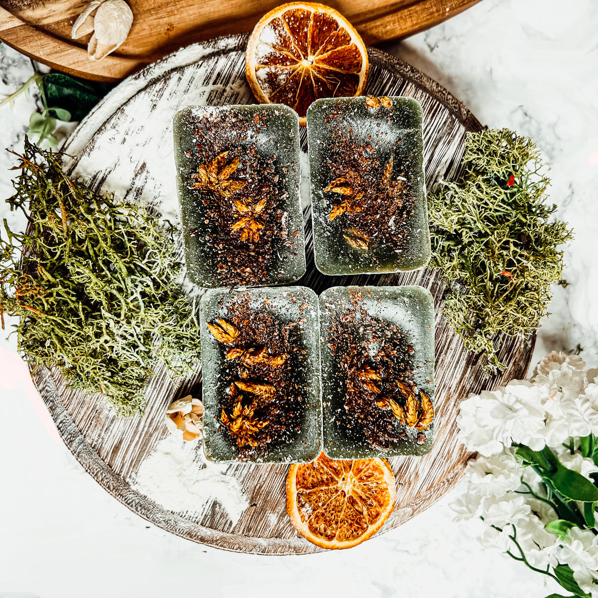- With our natural line of melts, you can actually see the hand-ground spices that make up our wonderful scents. And while our wax melts may look a little different than traditional melts, the colors come from the spices themselves, not from synthetic dyes. Each melt is coated with spices that are ground by hand to ensure the freshest ingredients into each product!