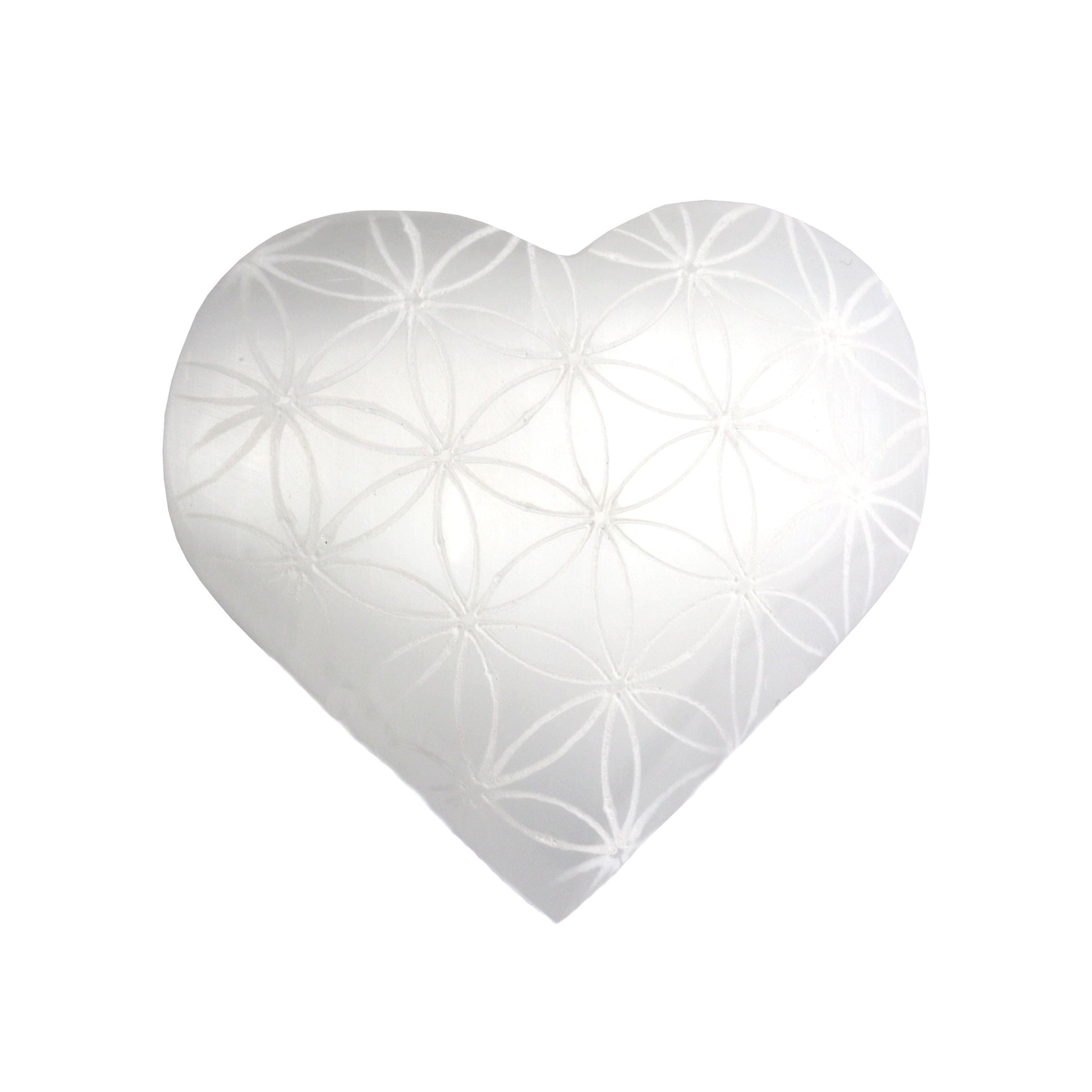 Selenite Heart Etched Flower of Life (Morocco) - Sacred Geometry - Ethically Sourced