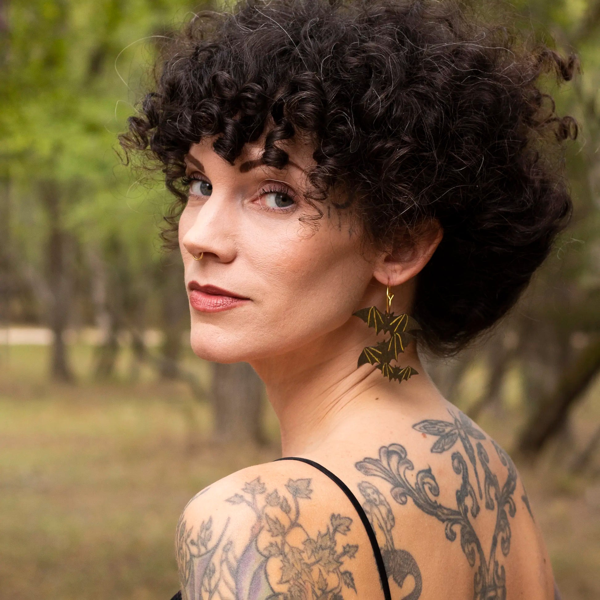 Whether it's spooky season or just a Saturday night our Shimmery Bat Hoop Earrings are sure to turn heads!
