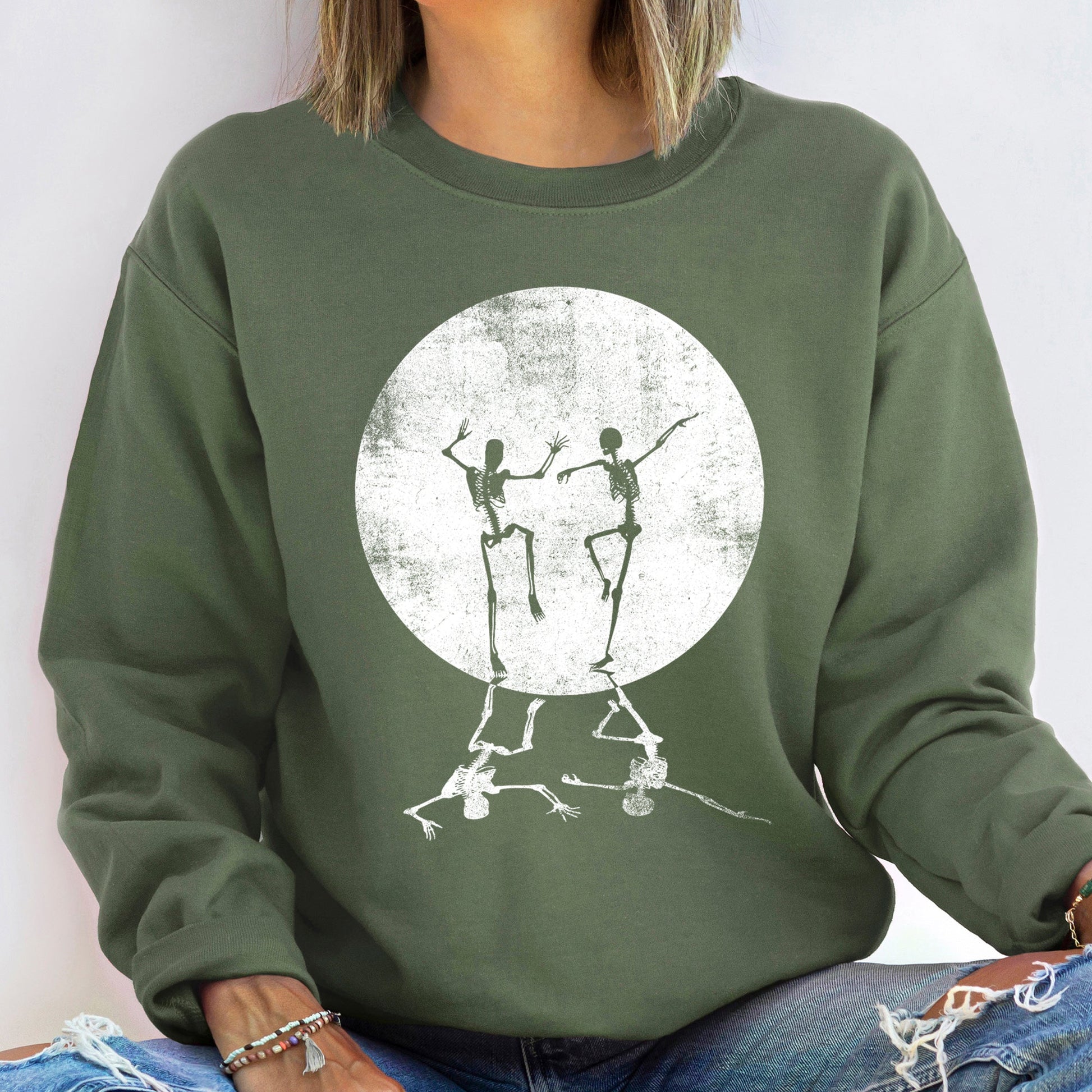 - Striking Graphic Designs: Featuring a unique skeleton dancing under the moon graphic, this sweatshirt makes a bold statement and reflects your fun-loving personality.