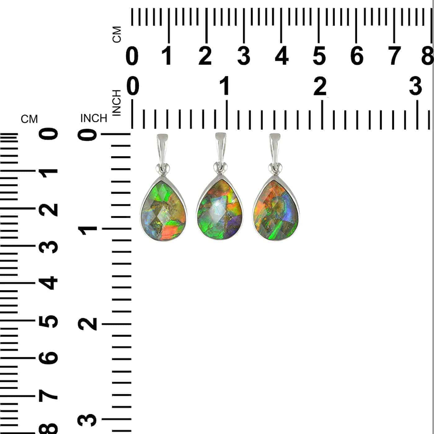 Starborn Faceted Ammolite Doublet Sterling Silver Pear Pendant - Small