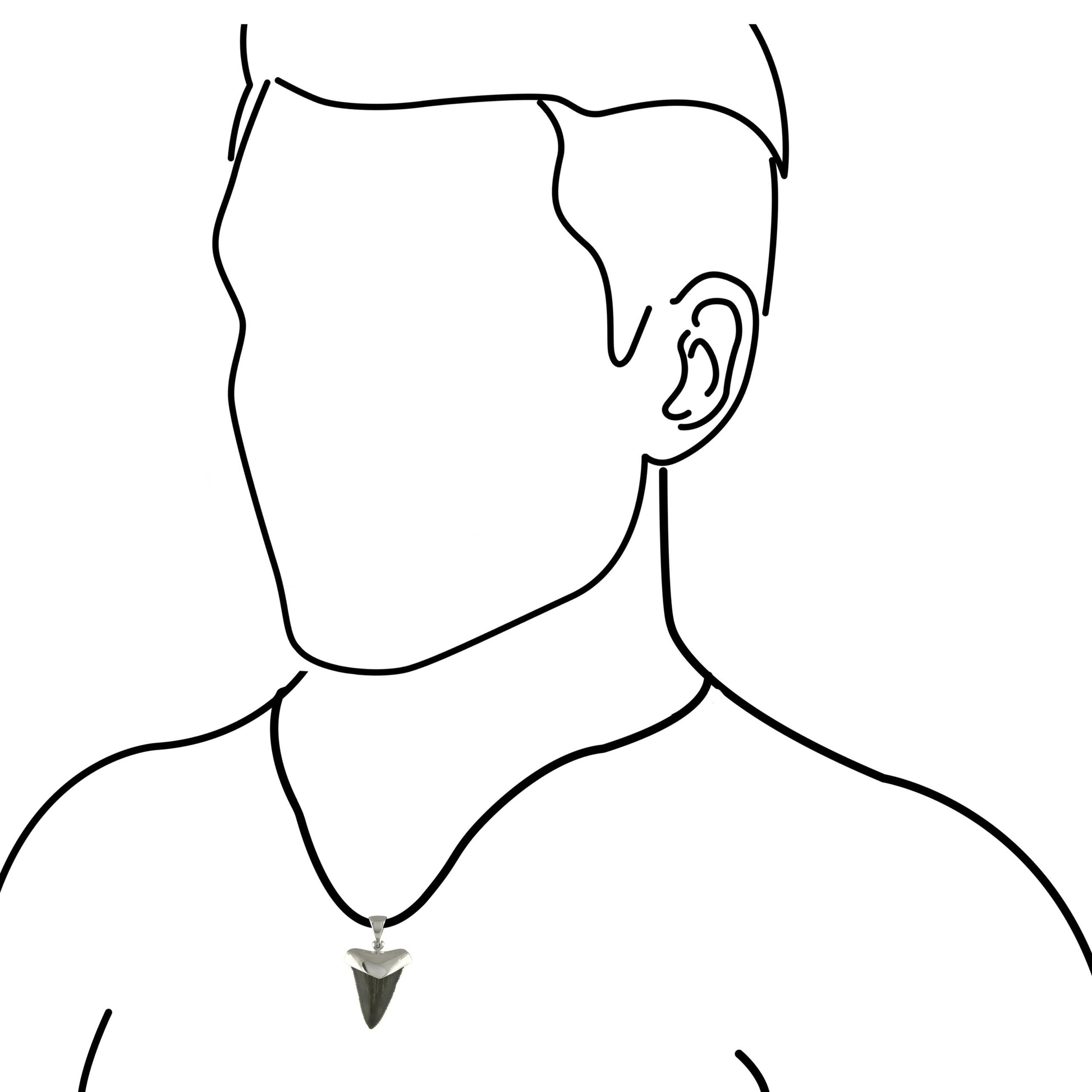 - Simply stunning Fossil Shark Tooth pendant handcrafted in Fine Sterling Silver. This pendant is made with black to brown fossil shark teeth that are set in a solid sterling silver cap setting. The pendant measures approximately 1.5 – 1.7 inches in length and 1 inch in width.