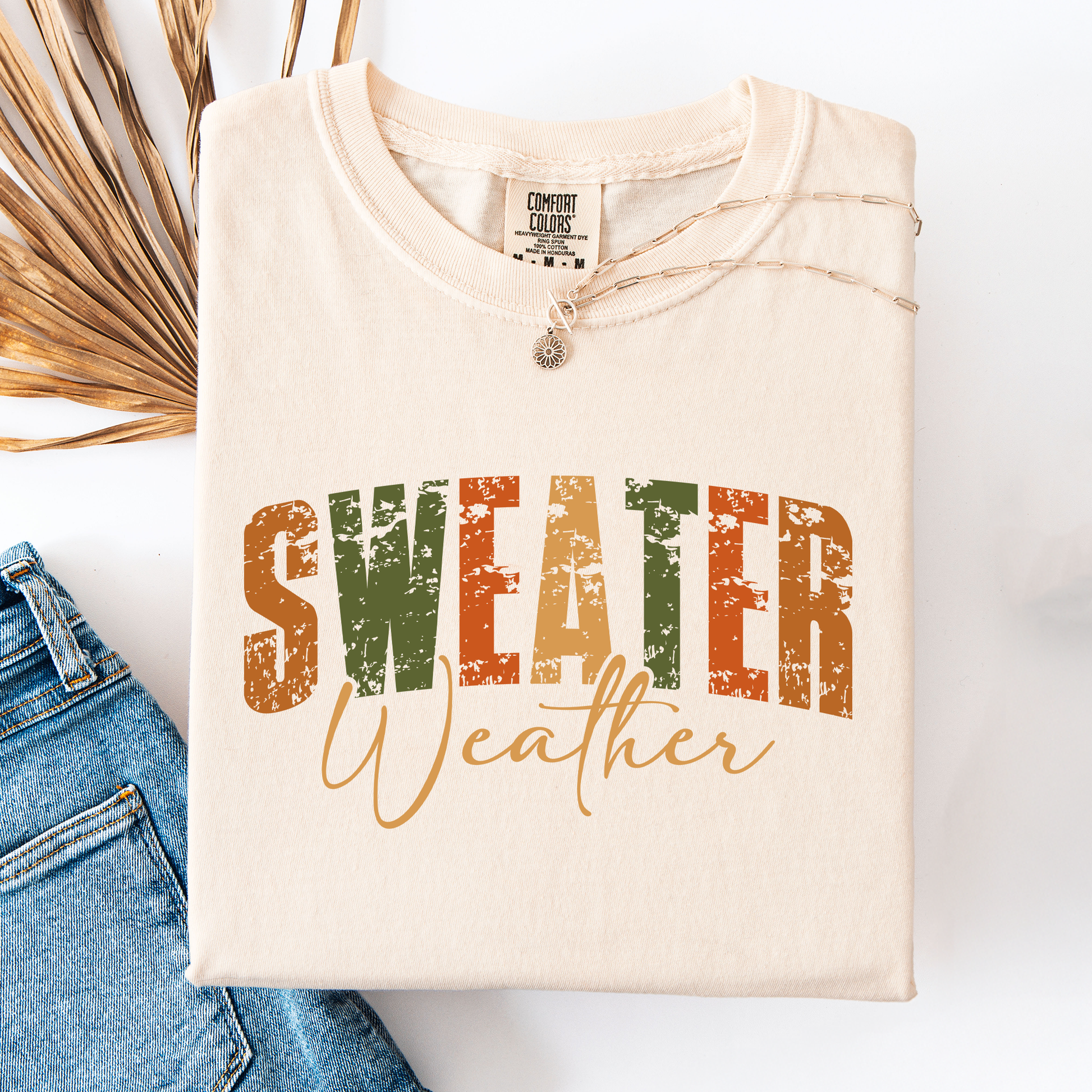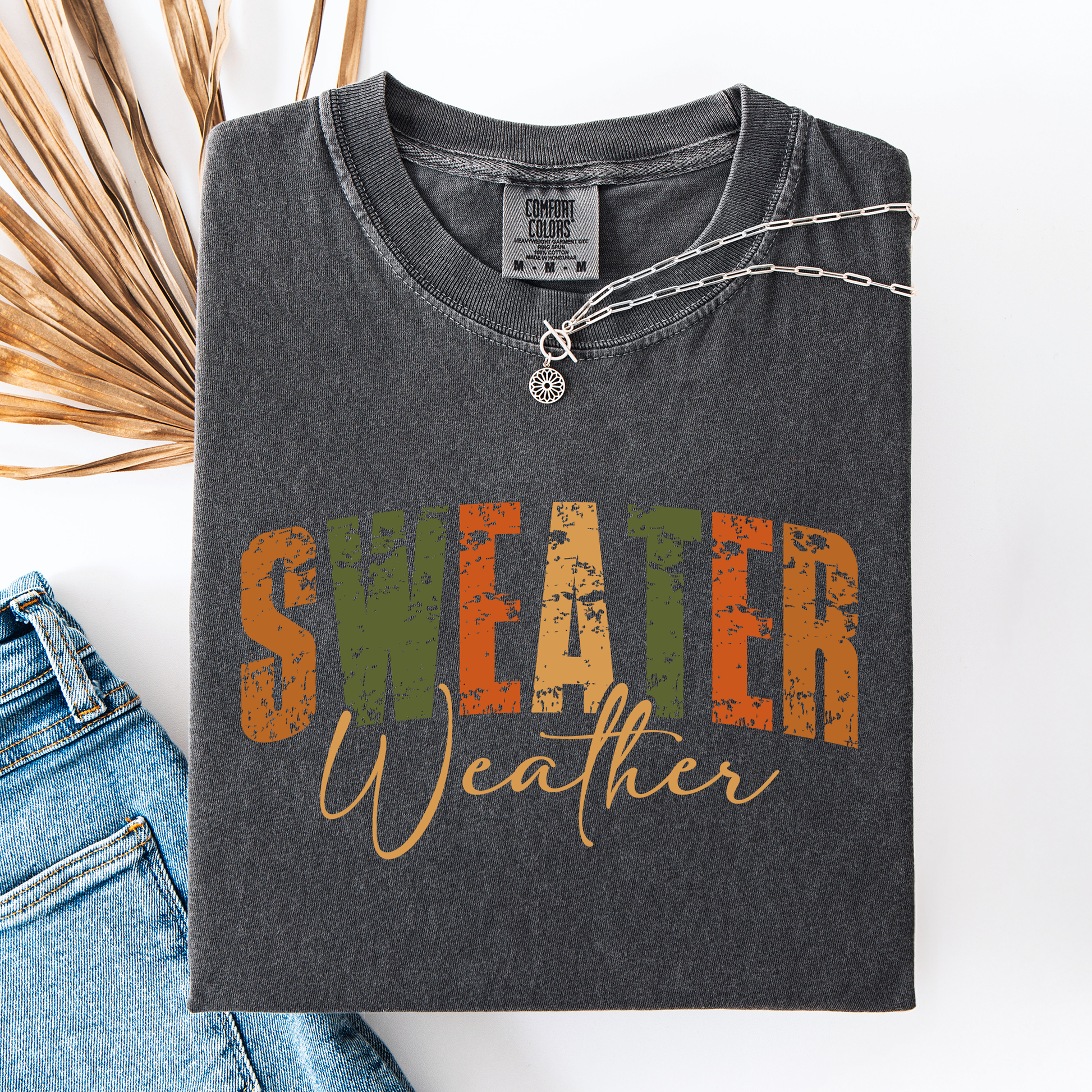 Step into Sweater Weather with Refinery Number One's Comfort Colors T-shirt, a fall-ready piece that blends a retro varsity vibe with autumn charm. This Mama-approved tee delivers cozy, artisanal vibes you can feel in every stitch.