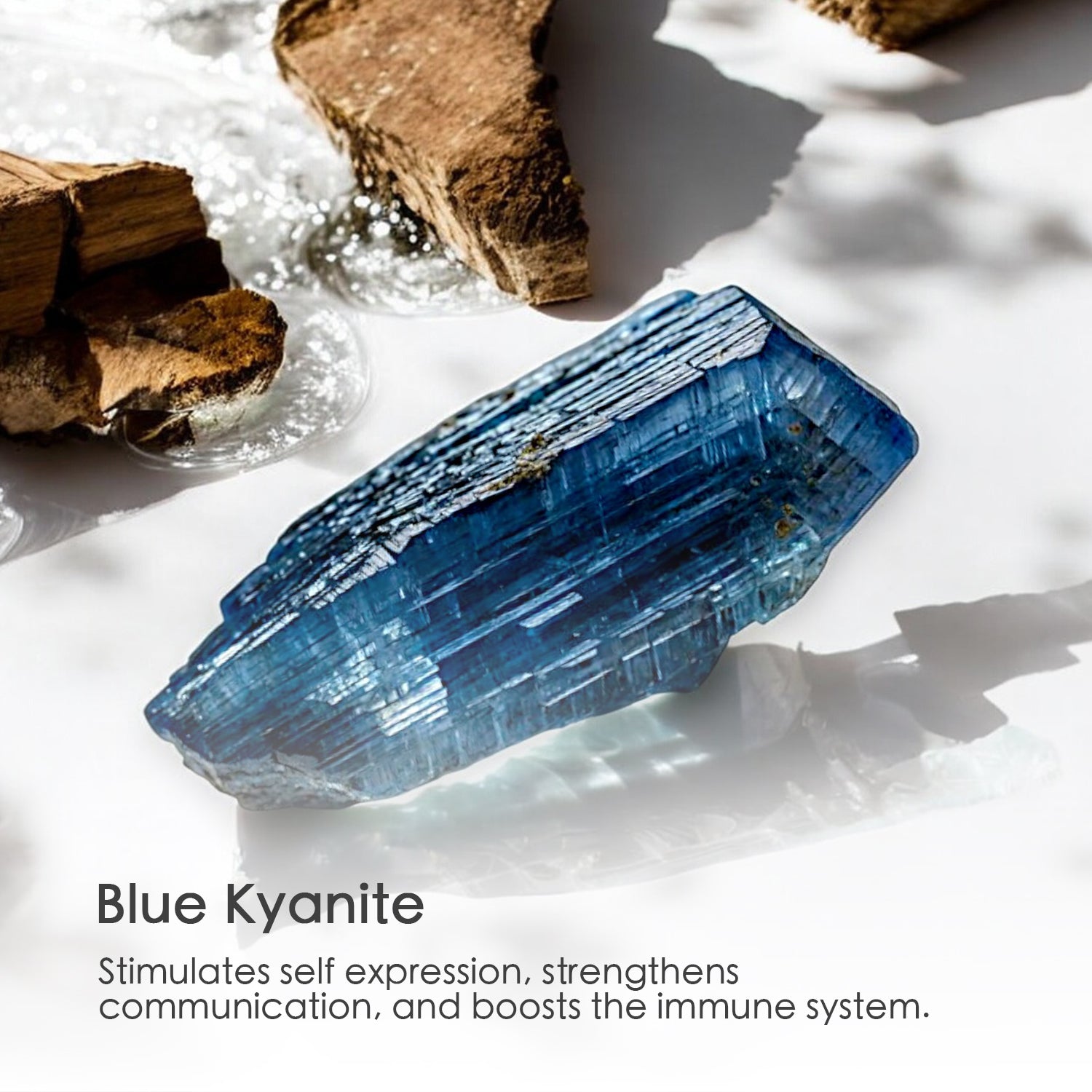 Elevate your voice and embrace harmonious expression with the Throat Chakra Crystal Candle from Innergy. Immerse yourself in the soothing embrace of the "Amber Tides" scent, a serene composition of sandalwood, musk, and driftwood that captures the essence of earthy tranquility. This invigorating blend is complemented by the presence of Kyanite crystals, renowned for their balancing and communicative properties, enriching the journey of self-expression and harmony.