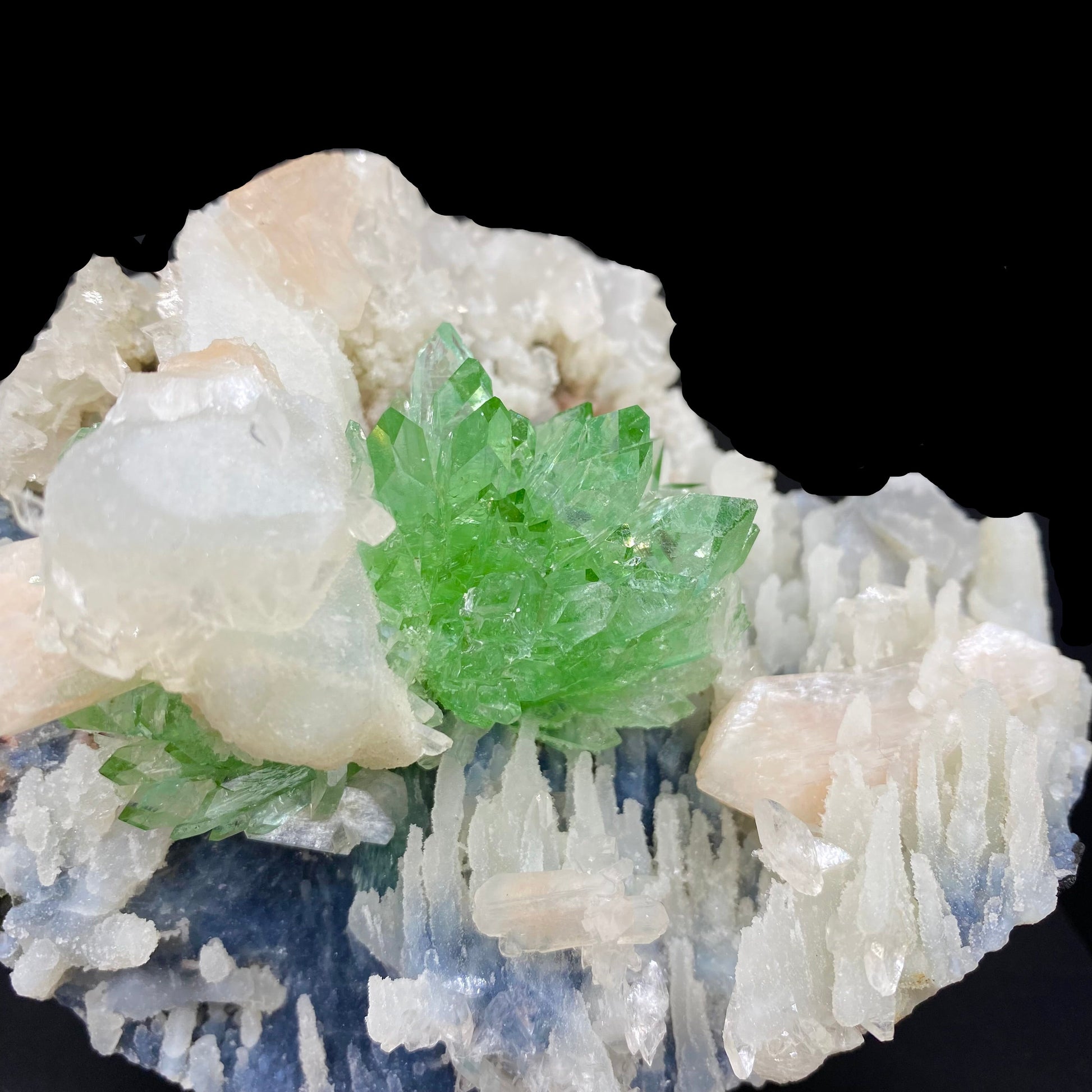 Top Collector Apophyllite & Blue Chalcedony Zeolite Specimen | 4-in-1 Gemmy Green Apophyllite with Calcite & Stilbite | Jalgaon, India DK81