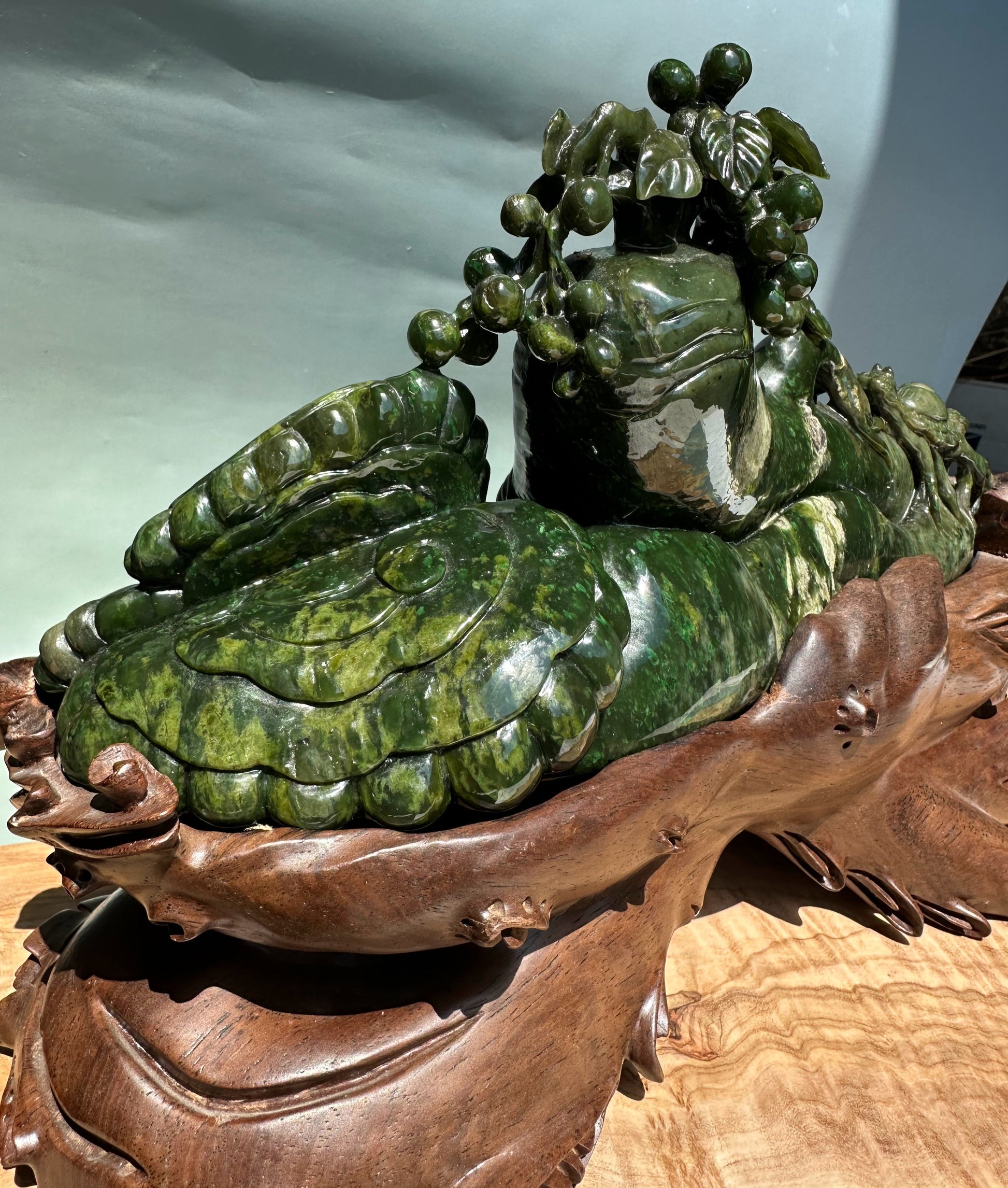 The jade weighs approximately 4 lbs 5 oz and comes on a beautiful wooden base.
