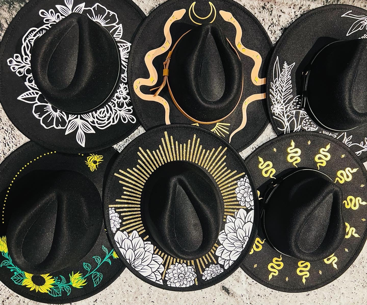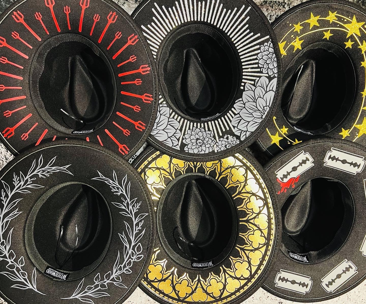 Welcome to Witchwood's brand new XL wide brim hats! These hats have our biggest brim yet! They are made of sturdy vegan felt and are all hand printed.