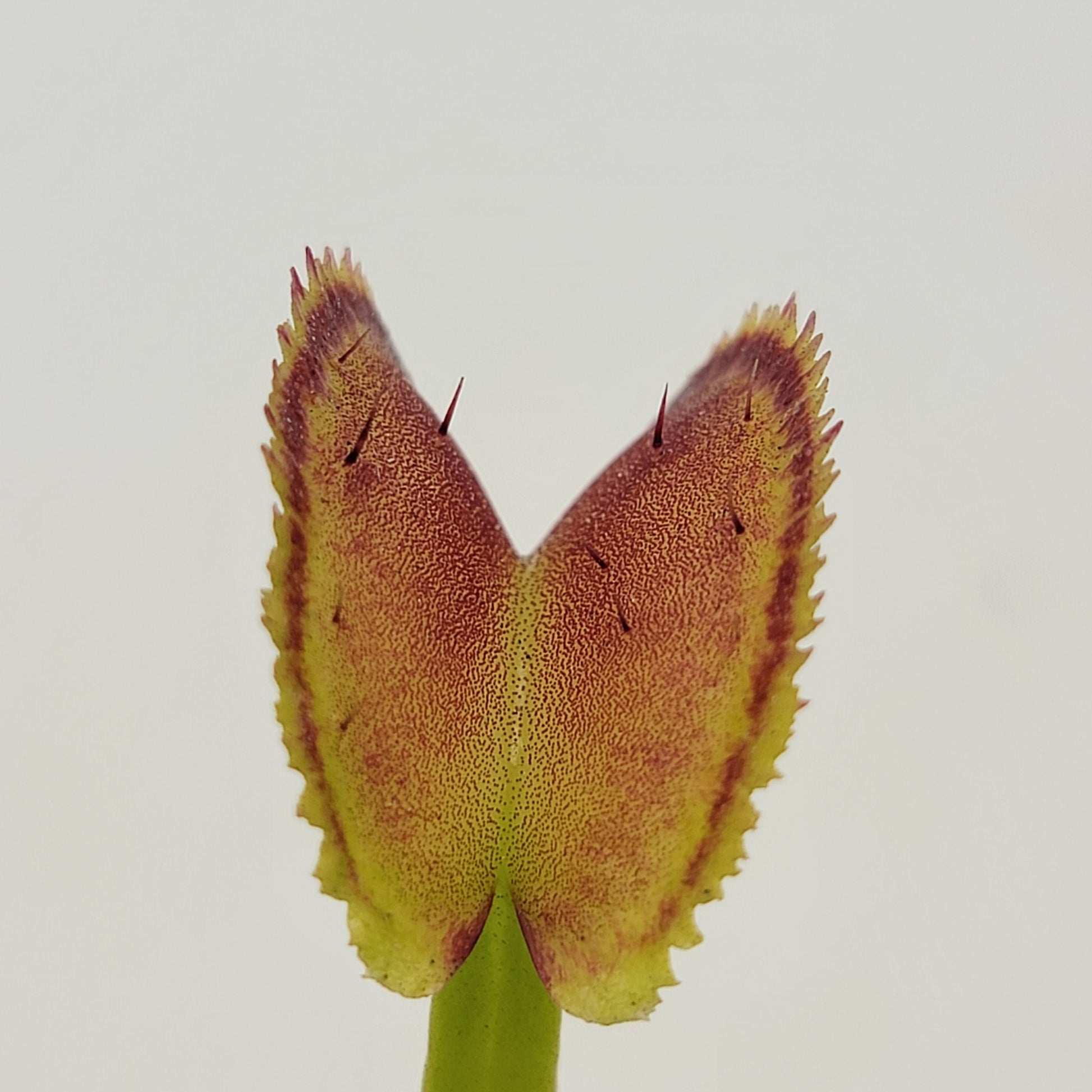 Venus flytrap (Dionaea muscipula) "FTS Trigger Happy." This VFT has unpredictable trigger hair quantities and placement on its traps.