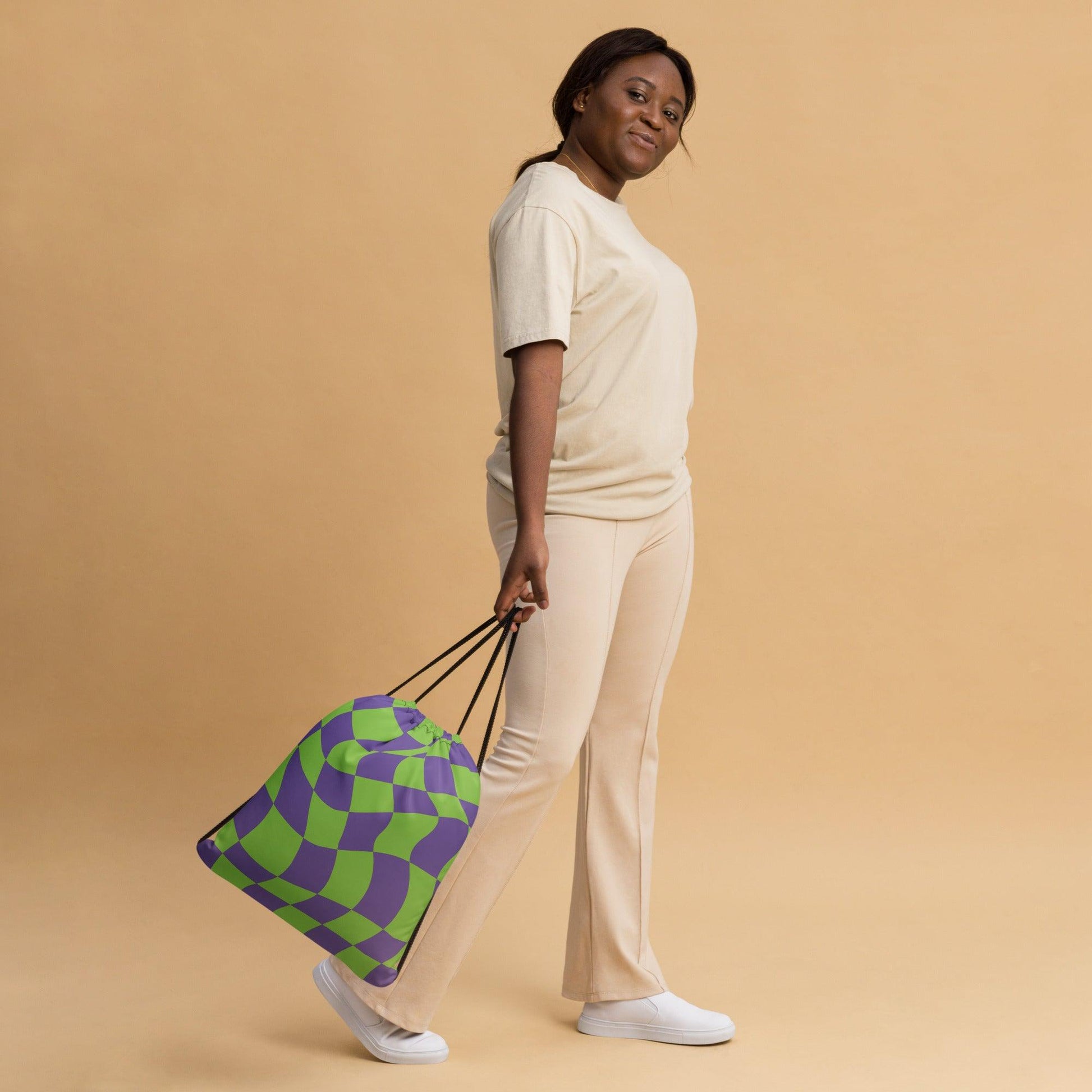 Whether you're hitting up a music festival, a dance party, or simply want to express your personal style, the Vibrant Trippy Checkered Drawstring Bag is a must-have accessory for all EDM lovers and fashion enthusiasts alike. Grab yours today and let your festie personality shine!
