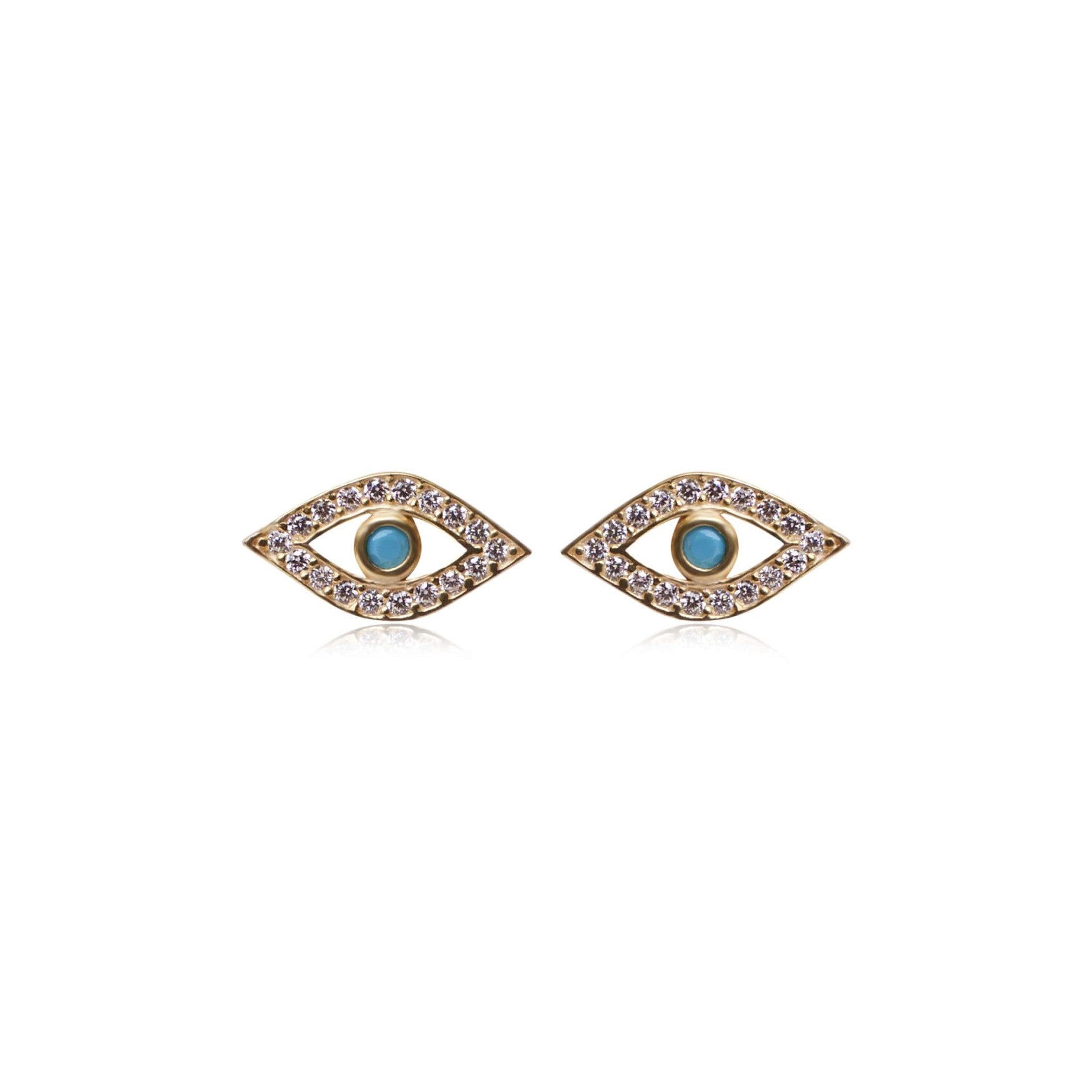 These mini evil eye studs are more than just beautiful! They enhance good luck and ward off bad intentions, creating luck and increased fortune when they are worn. Round brilliant cubic zirconias and uplifting turquoise stones in the center of each eye add a cheerful color and sparkle, all in a bright polished finish.