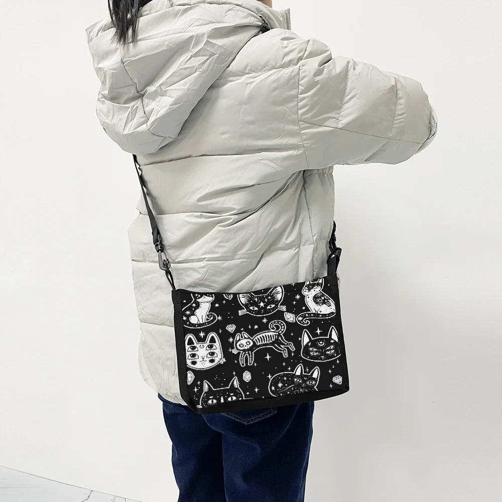 Gothic Cat Printed Shoulder Bag Halloween Fabric Crossbody Bag Versatile Small Square Purse Simple and Stylish Women's Handbag