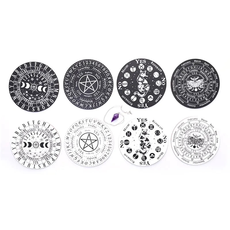 Many styles and designs available to choose from such as; Moon Phase, Cat, Pentacle, Goddess, Cauldron, Crystal Ball, & More...