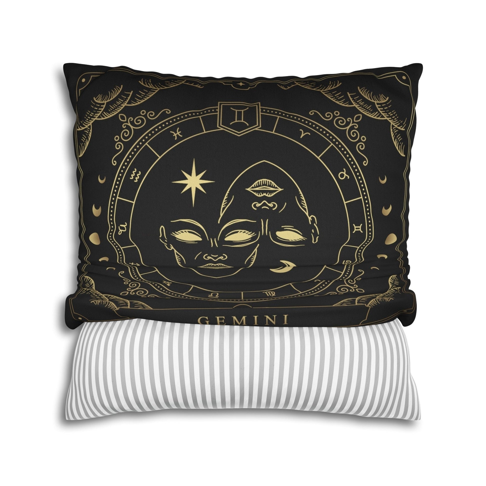 This pillow is a perfect gift for anyone who is born under the sign of Gemini, or who loves astrology and horoscopes. Gemini is the third sign of the zodiac, and is known for being witty, versatile, curious, and communicative. Gemini people are ruled by the planet Mercury, and their element is air.
